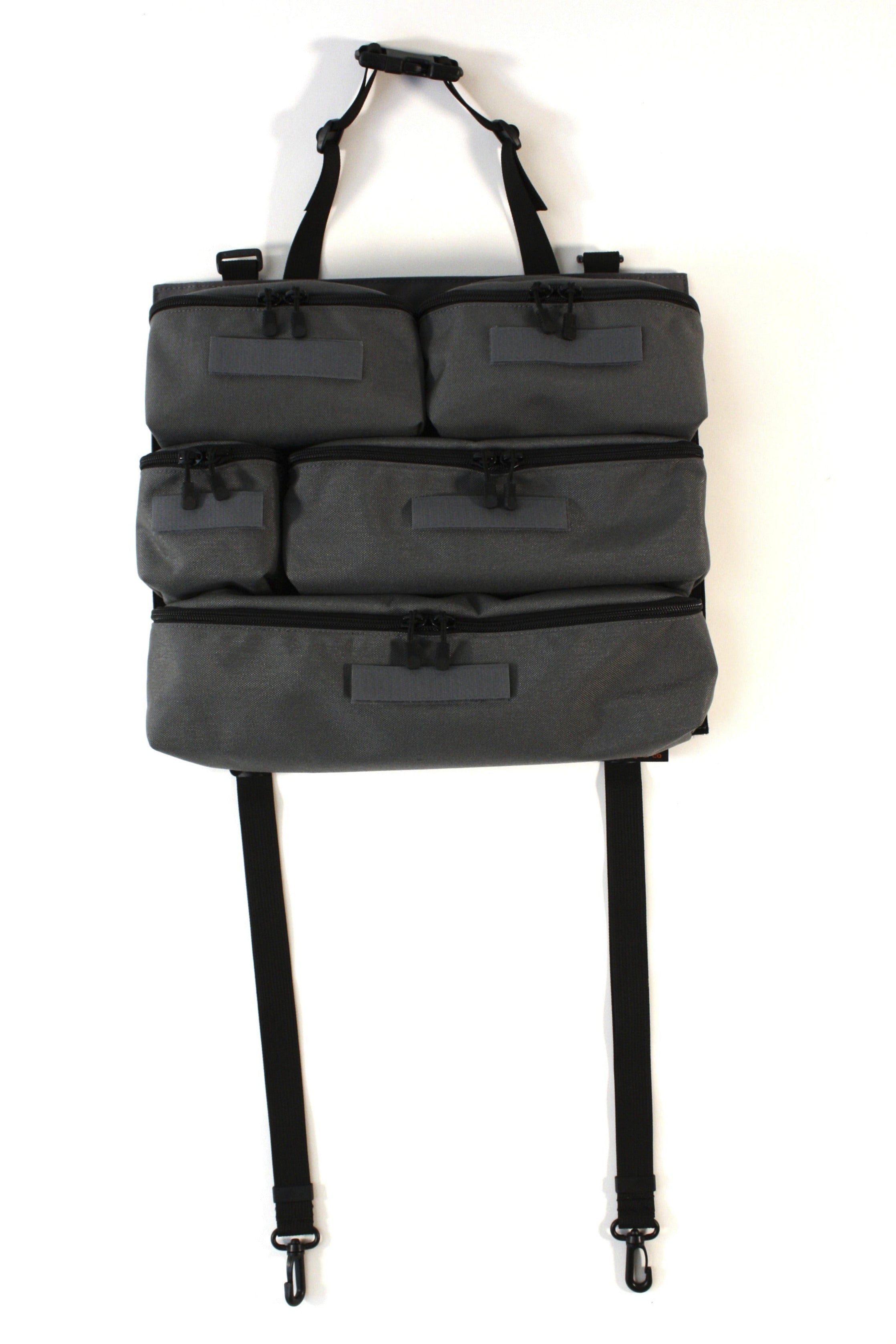 A reconfigurable hanging storage solution designed to adapt to your space, your gear, and your style of organization.