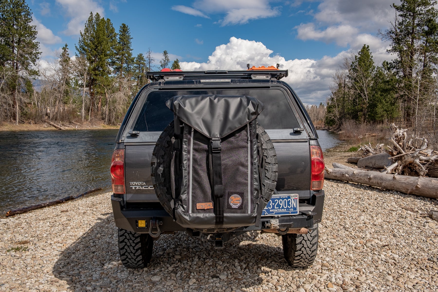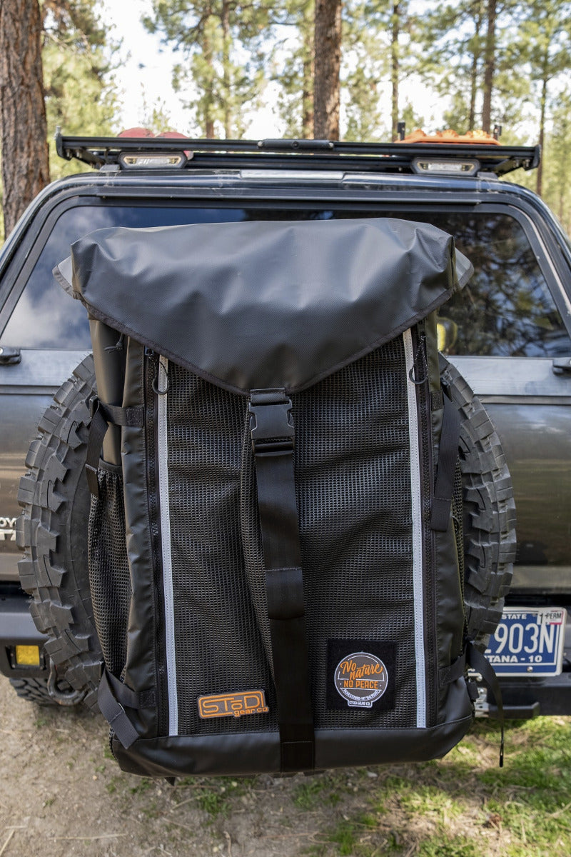 Pack it in, pack it out. The Oscar's Mobile Hideout trash storage helps you keep your trash and recycle contained and the air inside your vehicle clean and fresh while you keep the smelly trash out. The Oscar can be easily attached to your spare tire, ladder, or utility rack. It is crafted with poly reinforced, marine grade vinyl, resists fading and holds up against the elements. Its durability is unmatched and will likely be the last exterior trash bag you'll ever purchase. Poly vinyl mesh pockets provide small compartments to carry fuel canisters, trash bags etc. and additional storage options. Cleaning it is a breeze with front zippers that enable you to open it up and spray it out while still attached to your vehicle and drainage points in the bottom allow water to escape. Oscar's Mobile Hideout is an attractive and useful way to keep the stink out and keep your trash neatly contained!
